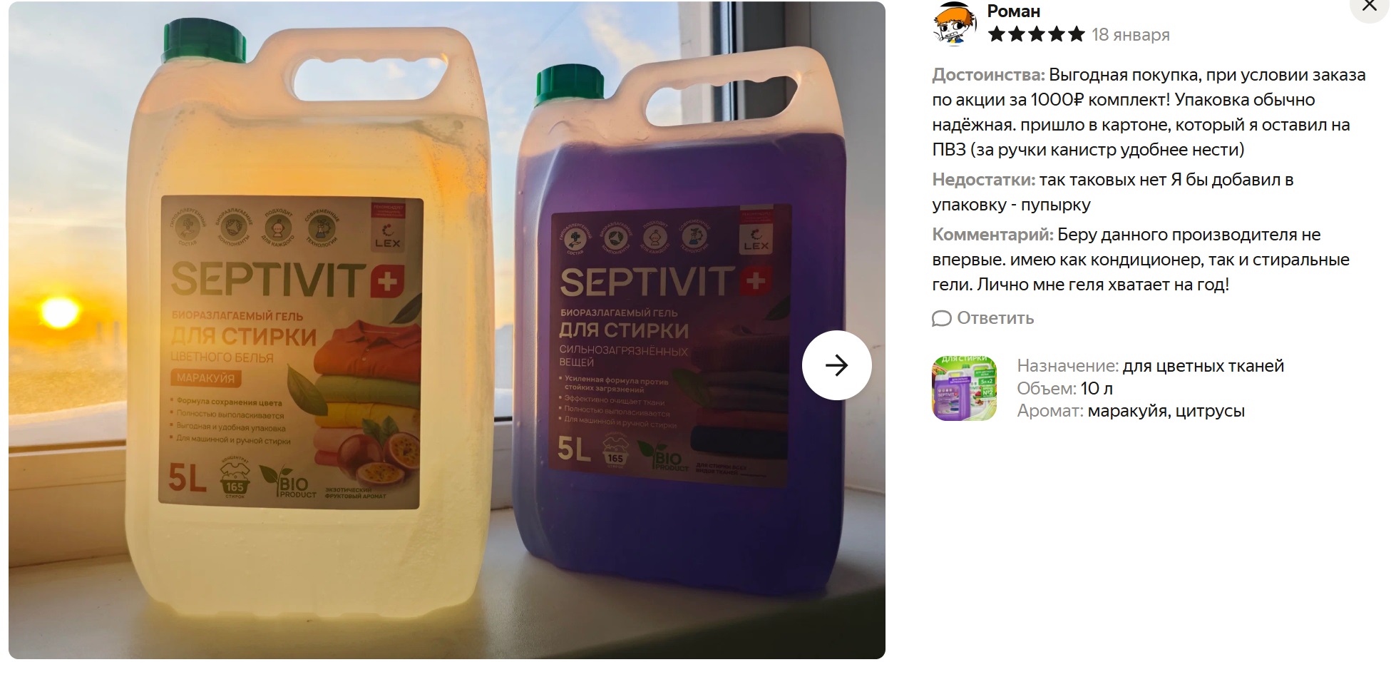Обожаю эту фирму, особенно фиолетовый гель. Он не оставляет разводов, не пахнет химией, полностью вымывается из ткани. Запаха отдушки на вещах нет. При этом грязь отстирывает нормально, даже неприятные запахи убирает. Можно стирать и в машинке, и руками, при любой температуре.
