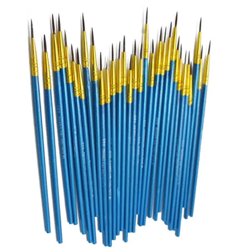 Набор кистей для тонких линий, 10 штук за 83₽ (8₽ за штуку - это дёшево, я считаю). Ручки деревянные, щетина нейлон. Размеры 1S, 2M, 3L - для миниатюр и деталей самое то.