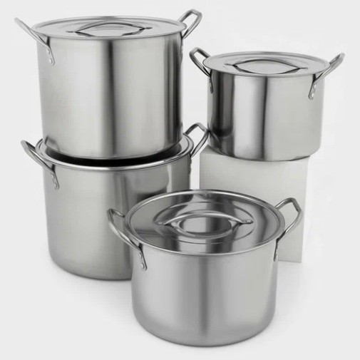 Натолкнулась на набор из четырёх больших кастрюль SKYPHOS, его сейчас можно взять всего за 2622 рубля с промиком за подписку на продавца. В наборе кастрюли на 6, 8.5, 11 и 13.5 литра - реально большие, отличный вариант для заготовок или готовки на большую семью! Диаметры 26, 28 и 30 см. Сделаны из нержавейки толщиной 0.5 мм, крышки также металлические. Подходят для любых плит, кроме индукции: газ, электричество, стеклокерамика, галоген. И в посудомойке мыть без проблем можно.
