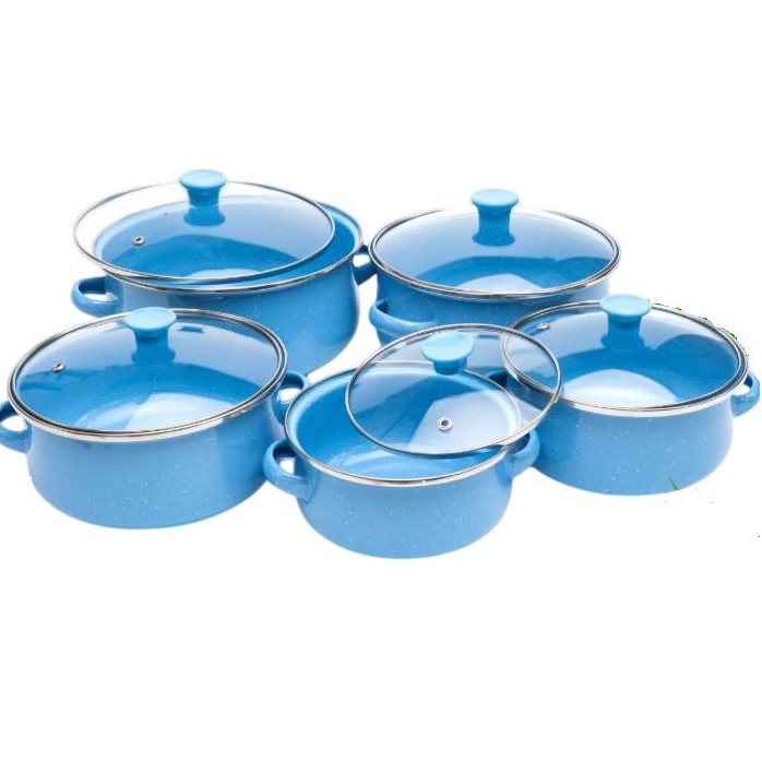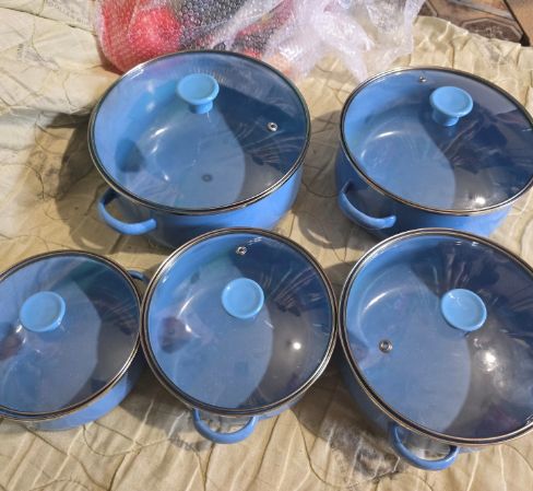 Взяла на дачу себе. Недорогой набор кастрюль MYIDEA из 5 штук. Объёмы 1.2, 1.6, 2.4, 3.1, 3.9 л. Эмалированное покрытие, стеклянные крышки с ручками, толщина дна и стенок 2 мм. Для всех плит, включая индукцию, и для посудомойки.