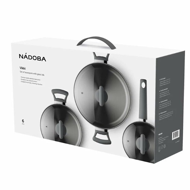 В наборе три штуки: большая 5,4 л (удобно для супа или борща на семью), средняя 3 л (для каш или гарниров) и ковшик 1,6 л (сварить яйца или соус). И три стеклянные крышки с дырочкой для пара.