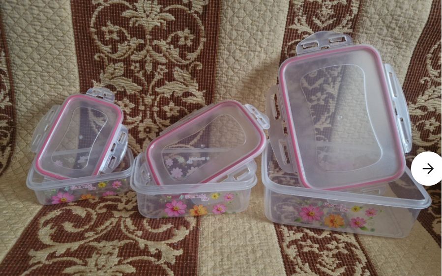 Объёмы 150, 300, 500 мл. Пищевой полипропилен, защелки плотные. В микроволновку, посудомойку, морозилку - можно. Запахи не впитывают. Складываются друг в друга - места мало занимают.