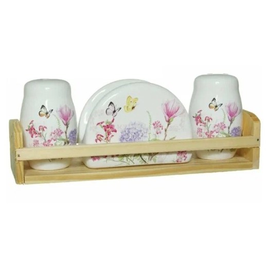 Очень милый набор для специй всего 370 рублей, если применить промокод на скидку 15%. Керамика, выглядит симпатично: две баночки для приправ и салфетница вместе бабочку образуют. Можно и специи хранить, и стол сервировать, и просто как украшение на кухне поставить. Высота 8.5 см.