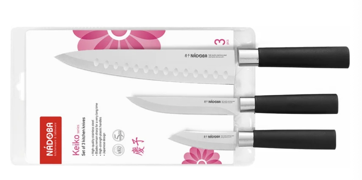 А ещё попался набор ножей NADOBA KEIKO за 1174 рубля. В наборе 3 ножа, сама пользуюсь похожими - и овощи почистить, и хлебушек нарезать, и мясо.
