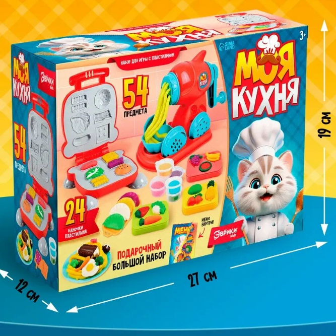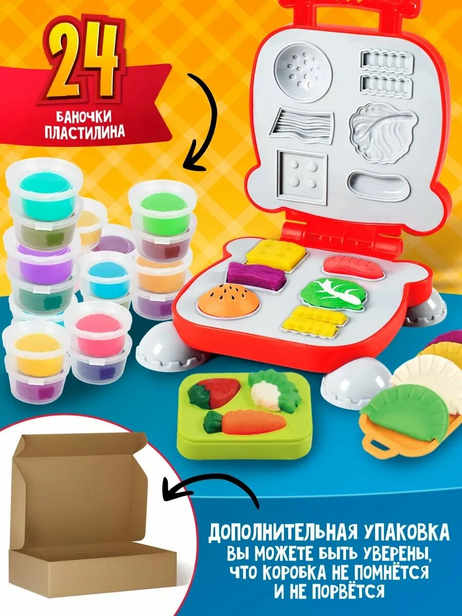 Нашёл наборчик на подарок дитю, самая низкая цена среди вб и озона. Там 24 баночки пластилина разных цветов и больше 50 дополнительных аксессуаров: инструменты и формочки. Для детей от 3 лет.