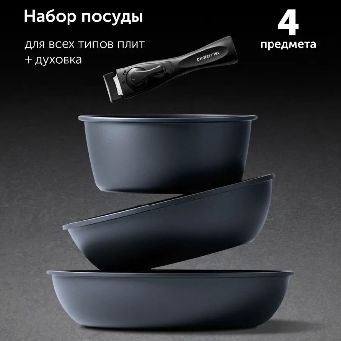 Заранее искал жене подарок на 8 марта, остановился на этом наборе. Во-первых, цена порадовала - 3524 р, дешевле, чем на других площадках. Во-вторых, комплект толковый: две сковороды (24 и 26 см) плюс ковш на 1,7 л. И ручка съемная, то есть можно в духовку ставить.