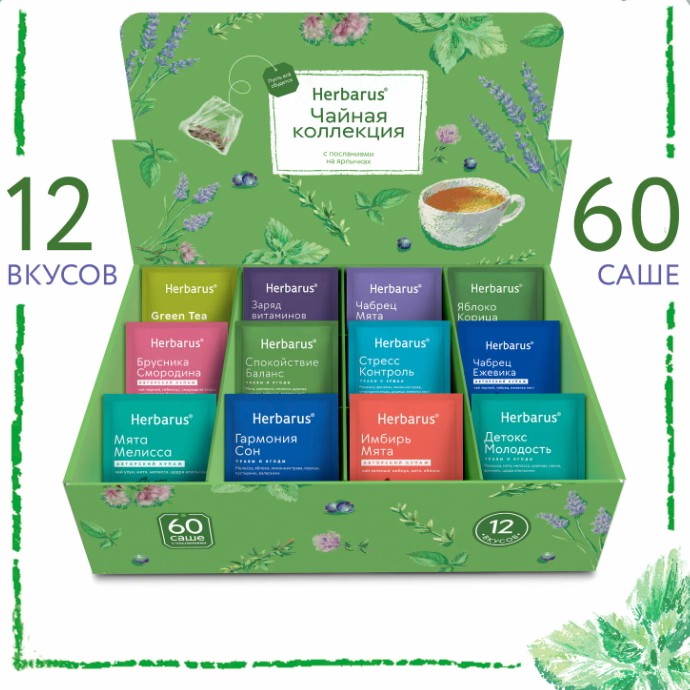 весенняя чайная коллекция, 12 вкусов, 60 пакетиков за 858 руб