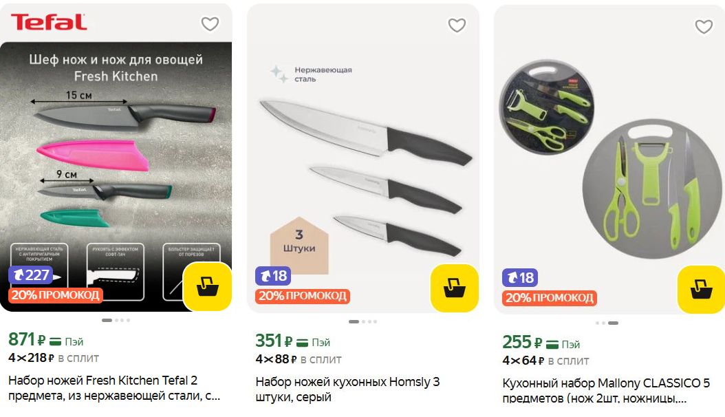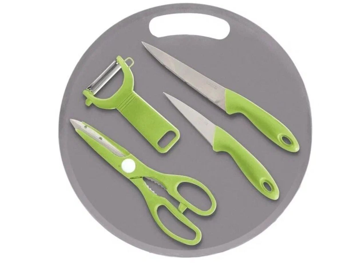 Искала на дачу и себе такой набор - Mallony CLASSICO 5 предметов за 204₽ (2 ножа, ножницы, овощечистка, доска). Для дачи - то что надо, не жалко. И всё что нужно в нём есть.