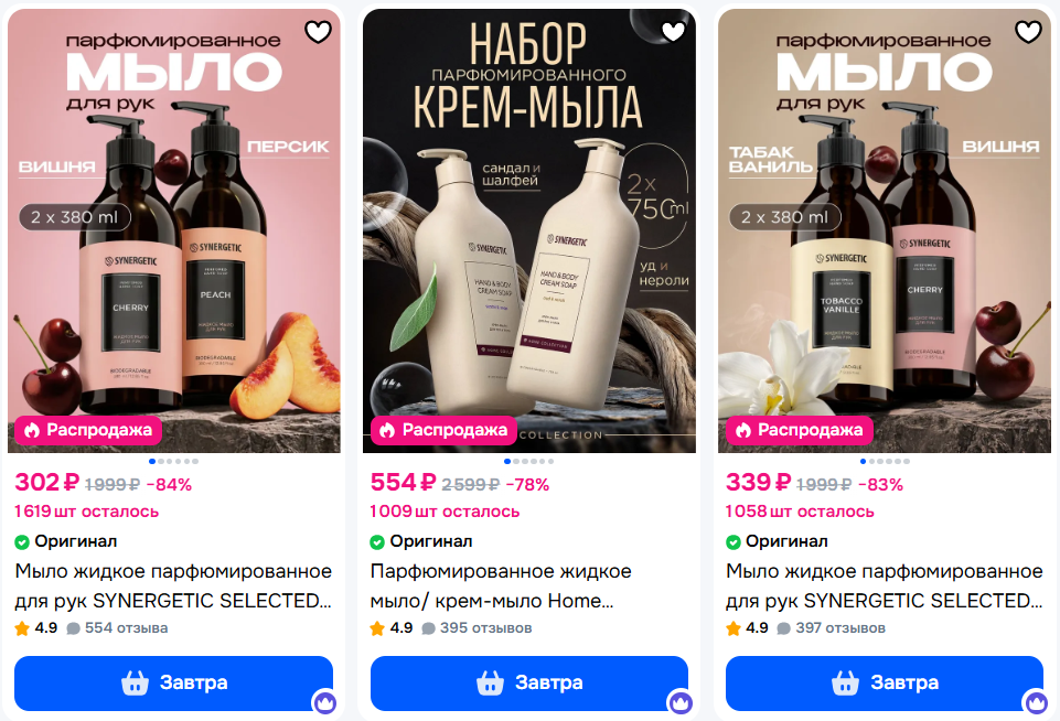Жидкое мыло + крем для рук и тела peach - 300 ₽ (150 ₽/шт). Нежный персиковый дуэт для ежедневного ухода.