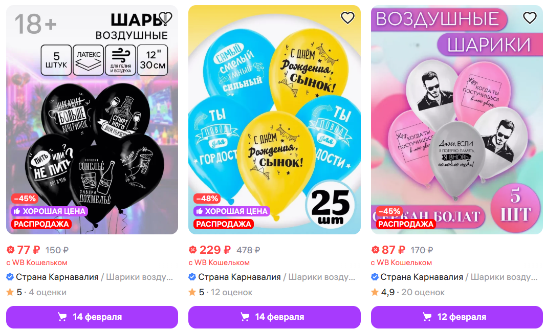 тут подборка воздушных шаров с выгодными ценами на Wildberries, стоимость актуальна при использовании Wb кошелька.
