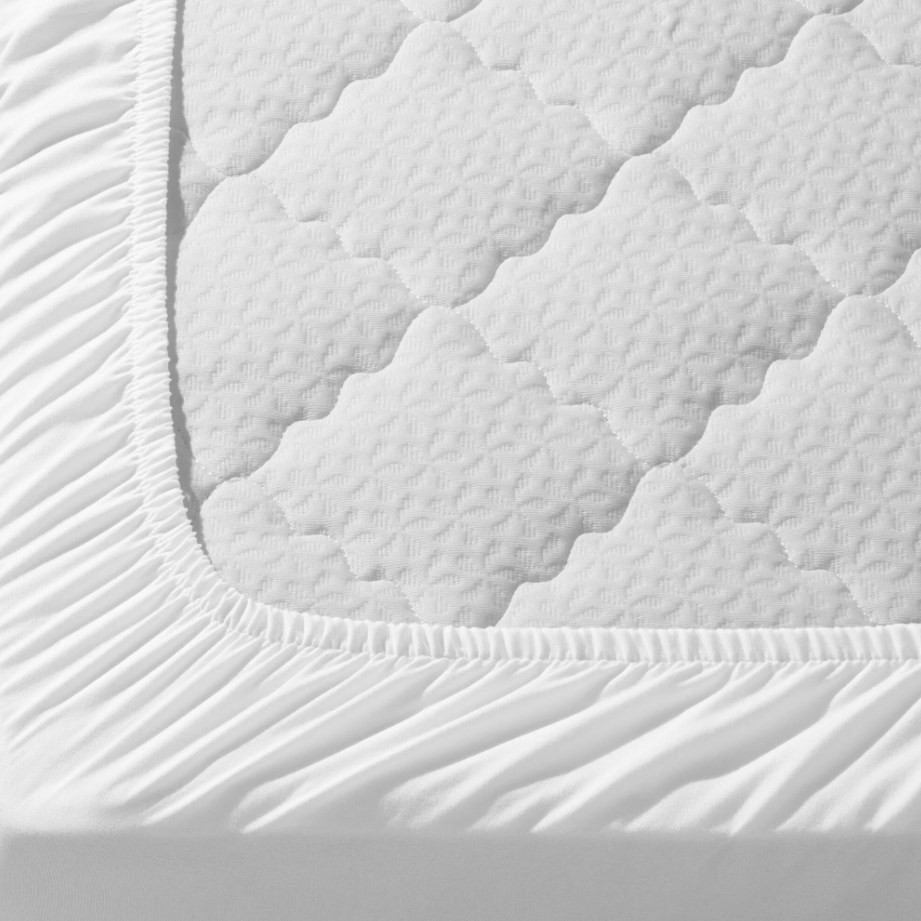 Крепится на резинке, не сбивается. Стирать можно в машинке, не деформируется. Отличная штука для детской кровати, для съёмной квартиры или просто чтоб матрас дольше оставался как новый.