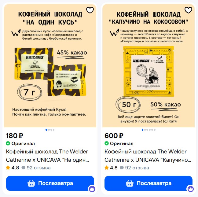 • Кофейный шоколад The Welder Catherine x UNICAVA Кусь "Капучино на кокосовом", 50% какао, 7 г за 82₽
