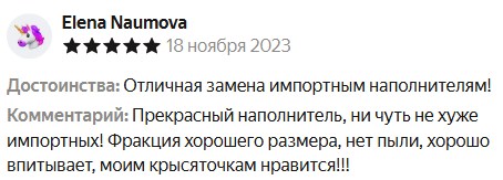 Подходит для разных животных - грызунов, кроликов, кошек, птиц и даже рептилий. Хорошо впитывает влагу и помогает удерживать запахи. Кукурузная основа делает его безопасным для питомцев, наполнитель почти не пылит и обычно не вызывает раздражения или аллергии.