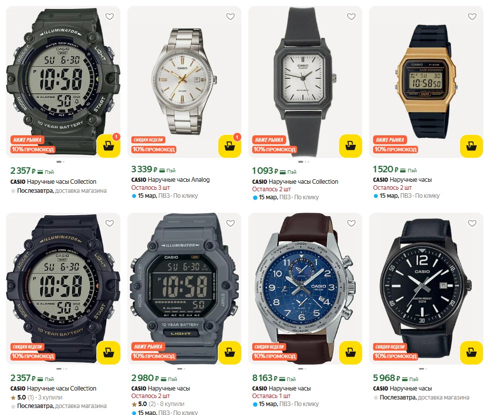 Ребята, кто любит Casio или просто ищет надежные часы на каждый день - сейчас на Яндекс Маркете скидка 10% на коллекцию. Промокод работает на разные модели: от классических F-91W до массивных G-Shock.