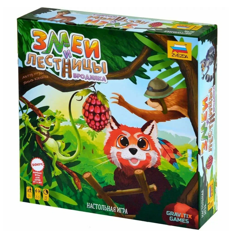 Это классическая игра в новом, увлекательном антураже. Вместо абстрактного поля - джунгли, где игроки соревнуются за редкий хрустофрукт, бросают кубик, двигают фишки и могут менять поле, создавая препятствия соперникам. Лестницы помогают сократить путь, а змеи и питоны отбрасывают назад.