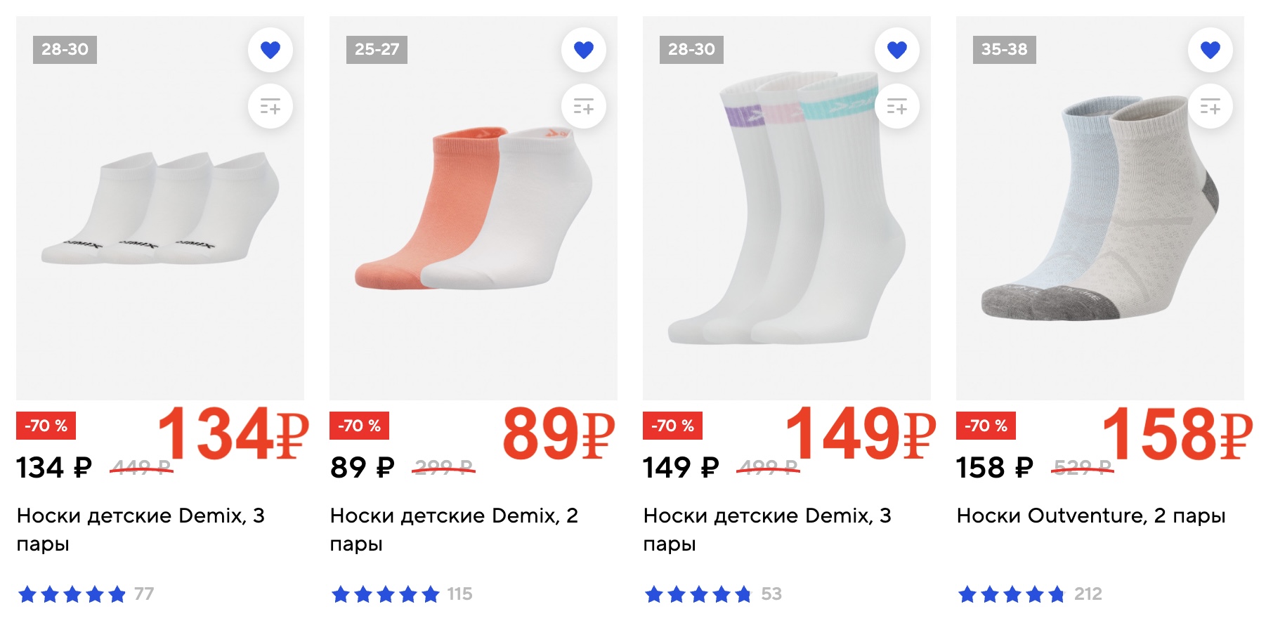 В каталоге носки брендов Demix, Outventure, Kappa и не только для взрослых и детей. На других маркетплейсах гораздо дороже!