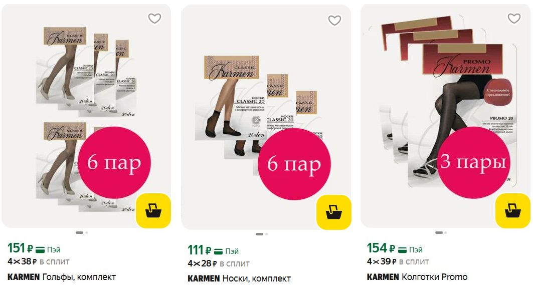 Хорошие базовые вещи по минимальной цене. Особенно выгодно брать наборами - например, 3 пары колготок за 153₽ (по 51₽ штука).