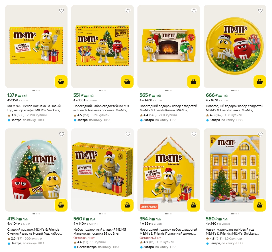 На Яндекс Маркете сейчас попался подарочный набор M&M’s & Friends по очень низкой цене - 137₽ при оплате Яндекс Пэй. В других магазинах либо уже нет в наличии, либо цены - космос!