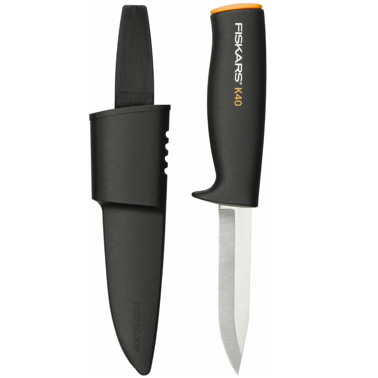 Лезвие из нержавеющей стали, общая длина 22.5 см, лезвие 10 см. Пластиковая эргономичная рукоятка с защитой для пальцев, есть пластиковые ножны в комплекте.