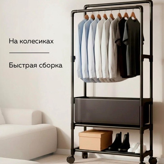 Напольная вешалка для одежды (Black) на колесах - 855₽. Удобно для прихожей или временного хранения вещей.