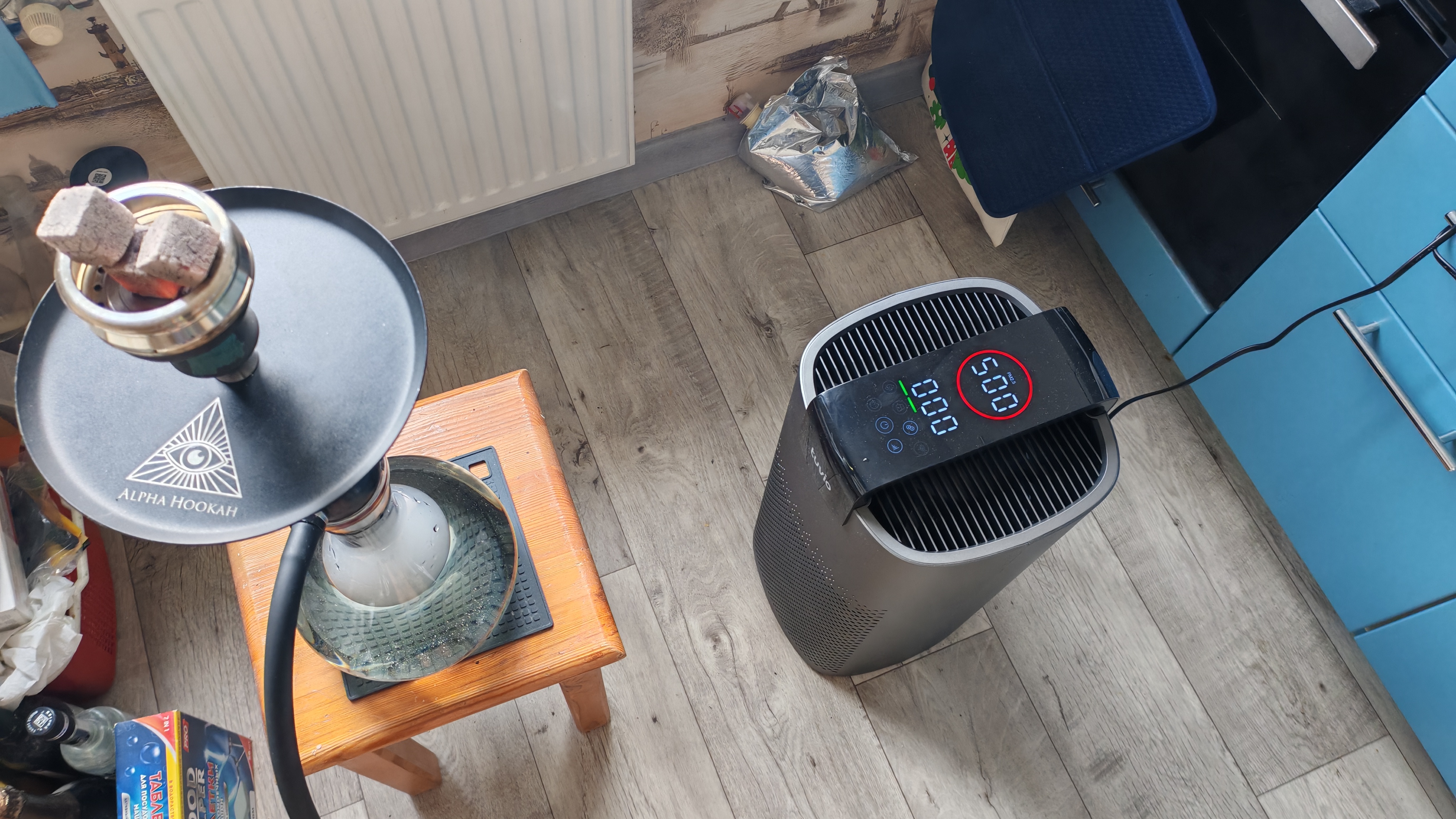 На фото видно, при включении, круг зеленого цвета, а при использовании кальяна, круг становится красным. Он действительно работает.