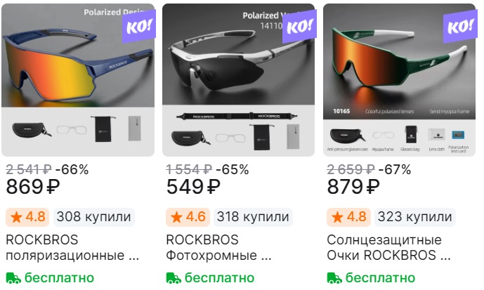 На AliExpress огромный выбор спортивных очков от популярного бренда ROCKBROS! При покупке через комбо-корзину цены получаются гораздо ниже, чем на маркетплейсах.