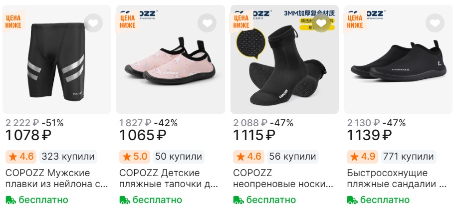 Это популярный бренд качественной одежды, обуви и товаров для спорта. Сейчас в фирменном магазине на AliExpress хорошо снизили цены и можно выгодно приобрести товары к пляжному сезону. Доставка будет бесплатная, примерно 2 недели.