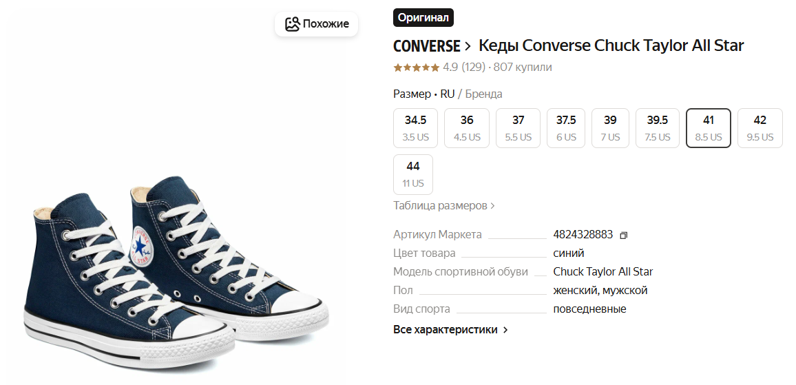 Кеды Converse Chuck Taylor All Star - классические кеды, доступные в большом размерном ряду (34.5–44) по цене 3628₽