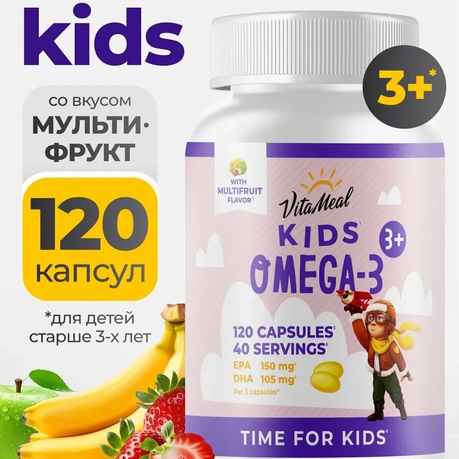 Цена с кодом 583₽. Детская добавка с омега-3 из рыбьего жира. Капсулы имеют приятный мультифруктовый вкус и предназначены для детей с 3 лет. Омега-3 поддерживает здоровье сердца, сердечно-сосудистую систему, а также способствует развитию мозга и зрения.
