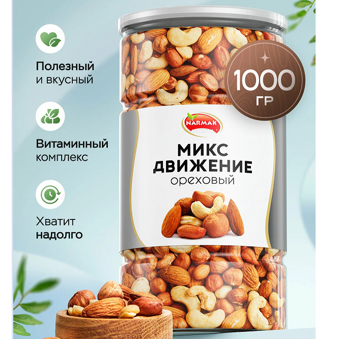 Цена с промо классная! Смесь из четырёх видов орехов - кешью, фундук, миндаль и арахис. Никаких добавок, консервантов или усилителей вкуса, просто сырые орехи.