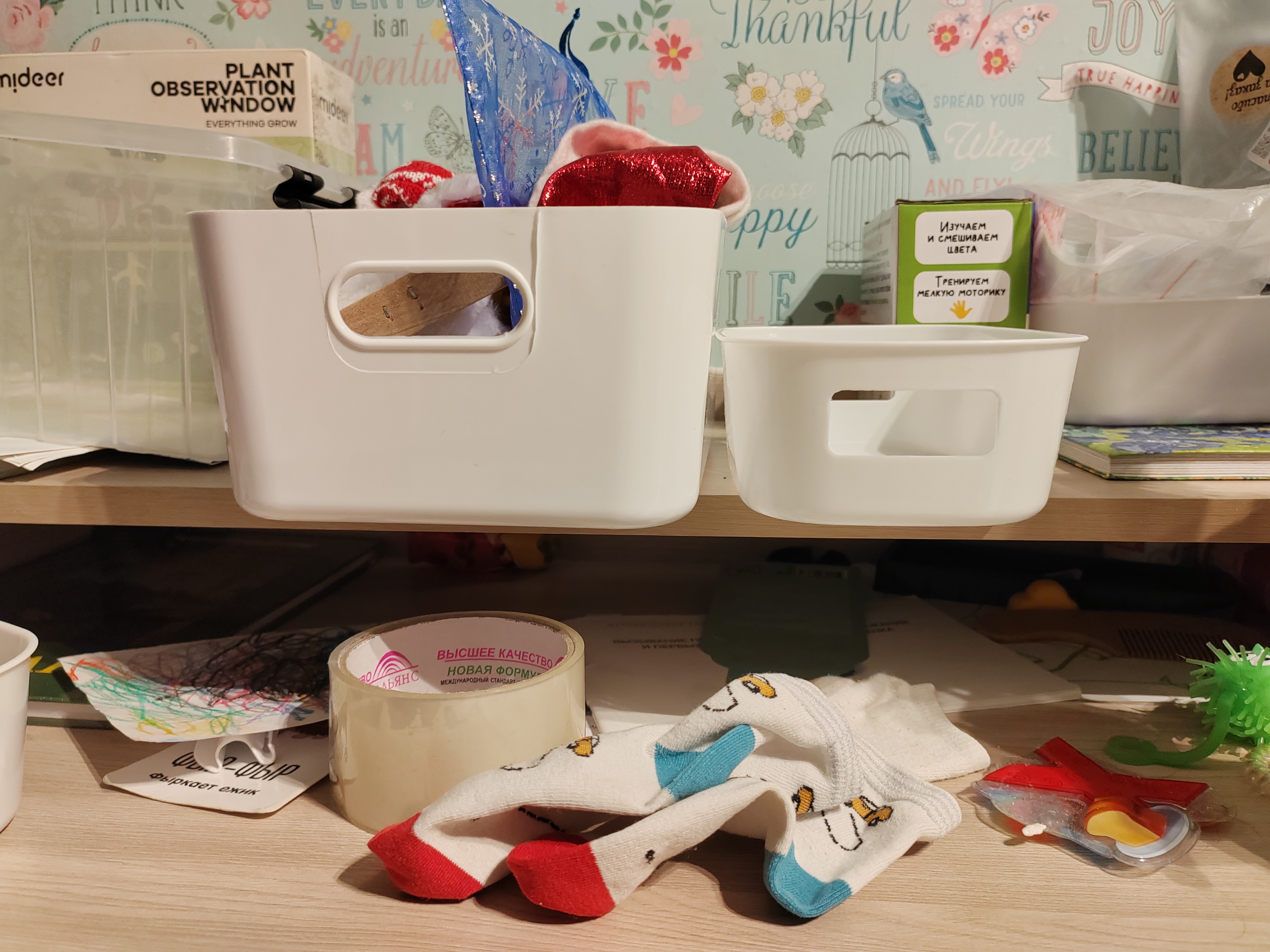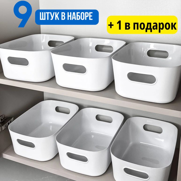 Пластик плотный, глянцевый (легко моется), не гнется под нагрузкой. На дне - антискользящие фиксаторы, чтобы коробка не ездила по полке. Удобные ручки для переноски. Это не одноразовая тара, а долгосрочное решение.