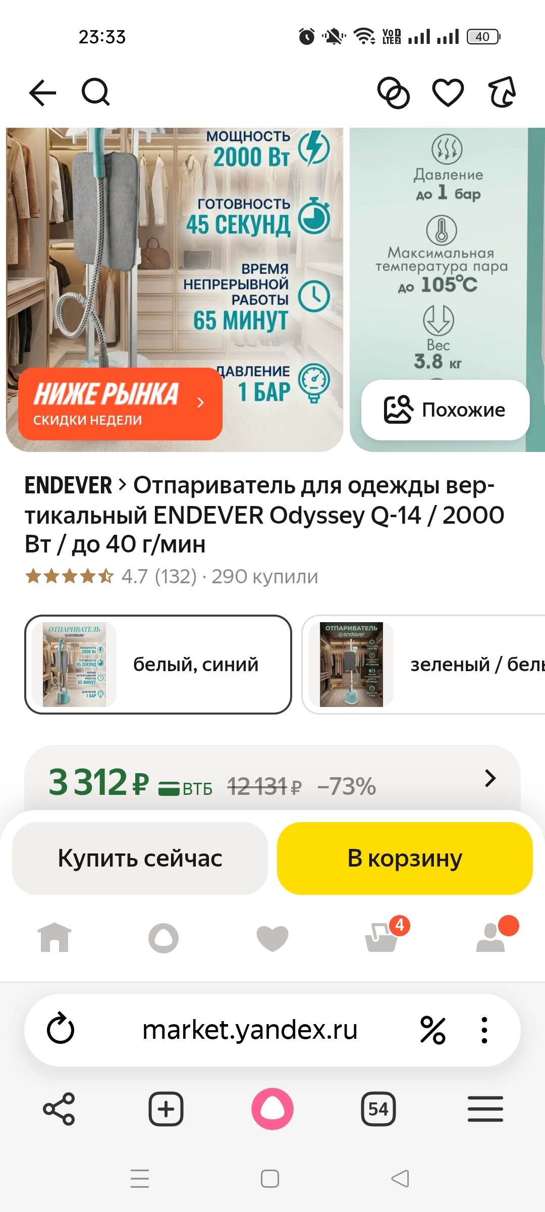 Отпариватель для одежды вертикальный ENDEVER Odyssey Q-14 / 2000 Вт / до 40 г/мин
