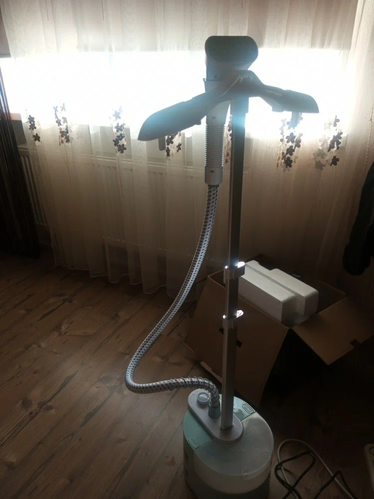 Ищи значок перца и жми на него - скидос будет! Греется отпариватель за 45 секунд, пара хватает на час работы, резервуар 1.8 л, можно доливать воду прямо во время использования. 2 режима - для деликатных тканей и для плотных. Телескопическая стойка, гладильный столик откидывается на 90 и 180 градусов, насадка металлическая. Есть защита от перегрева, автоотключение при пустом баке, защита от скачков напряжения.