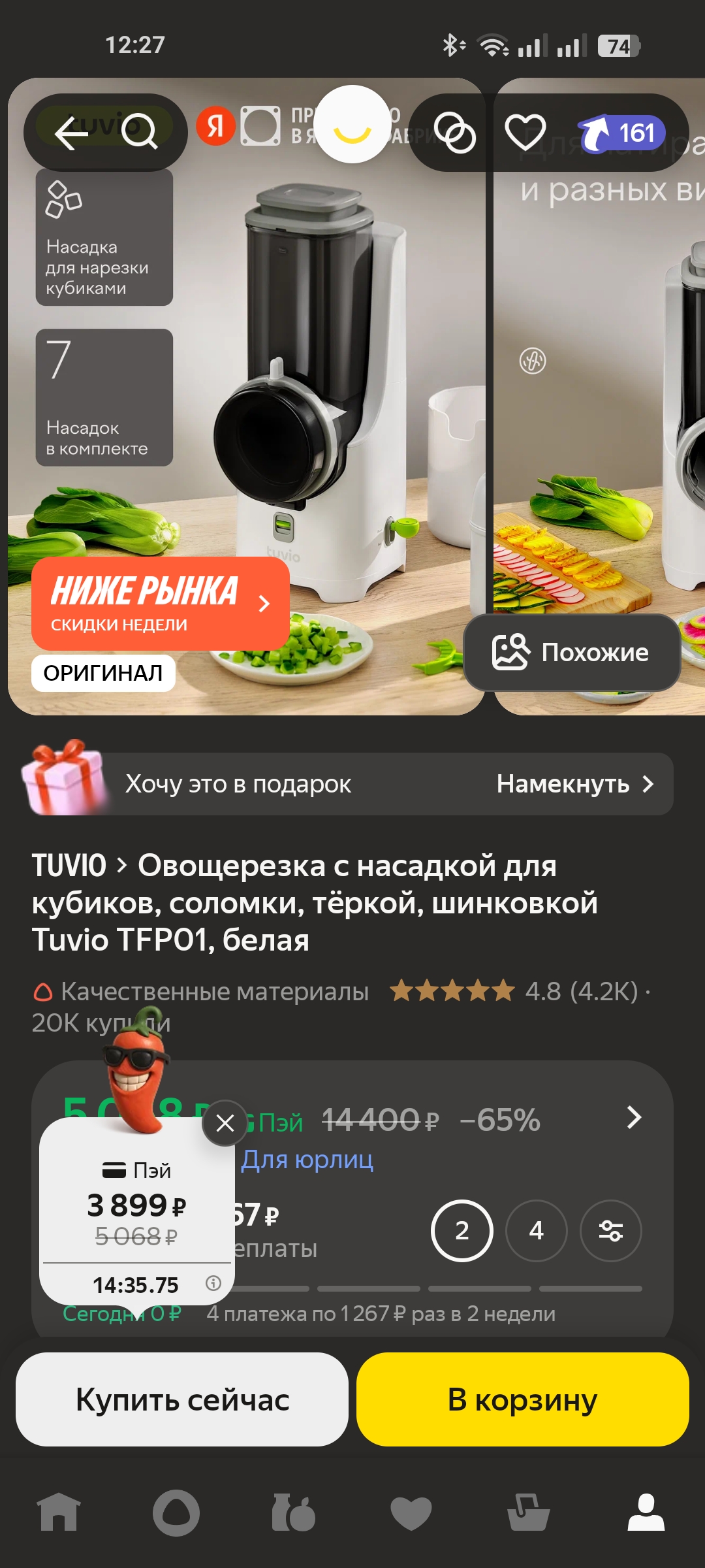Присмотрел полезную штуку для кухни. Мощность 500 Вт для быстрой нарезки любых овощей и фруктов.