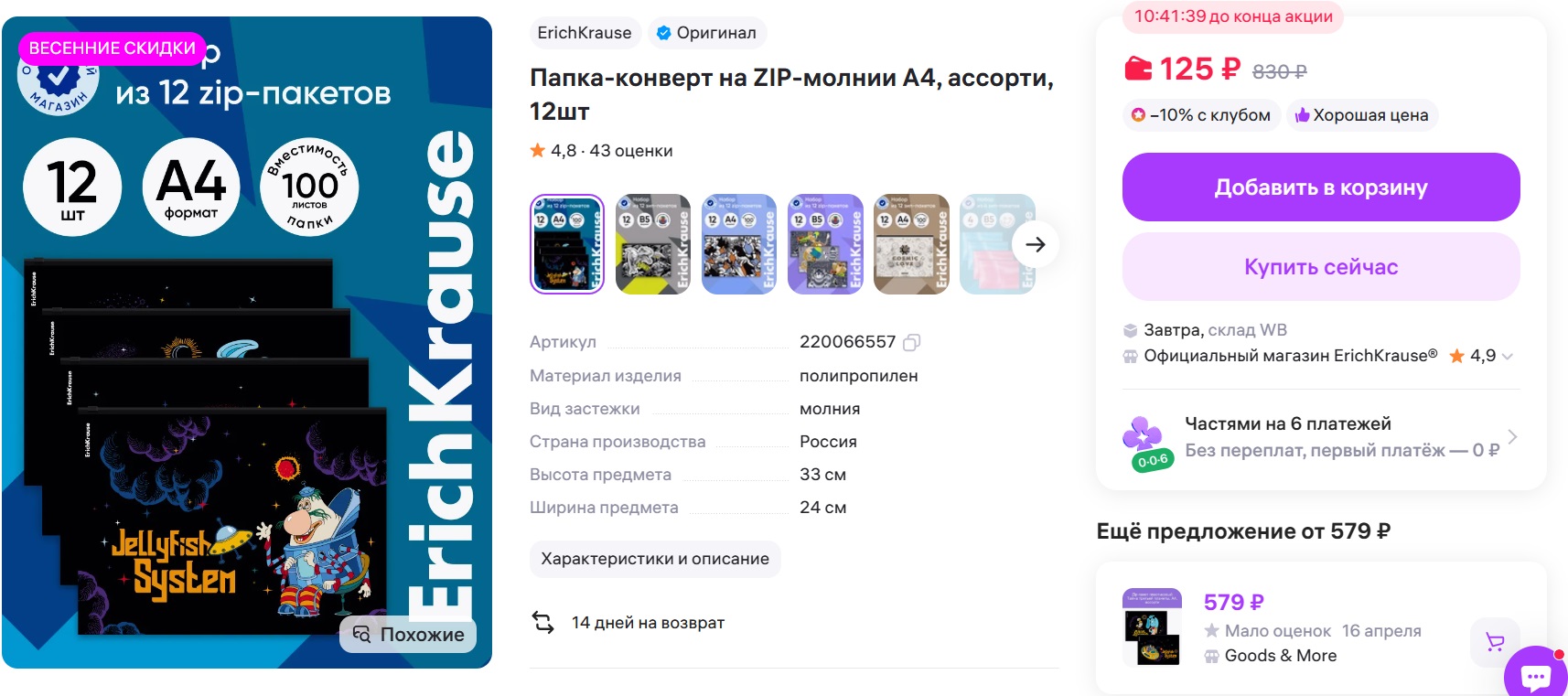 ErichKrause Папки на zip-молнии пластиковые в школу и офис, 6 штук за 78