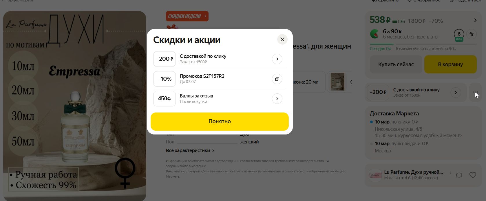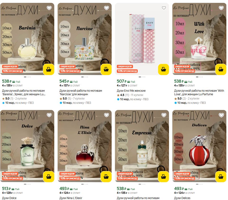Духи ручной работы по мотивам популярных ароматов - с промокодом на скидку 10% и кешбэком баллами за отзыв. Оставляете отзыв - получаете 450 баллов назад. Выходит очень выгодно!