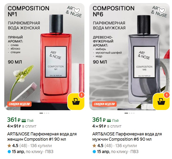 Нашла парфюмированную воду ART&NOSE по 361₽ - обычно она от 1400₽.