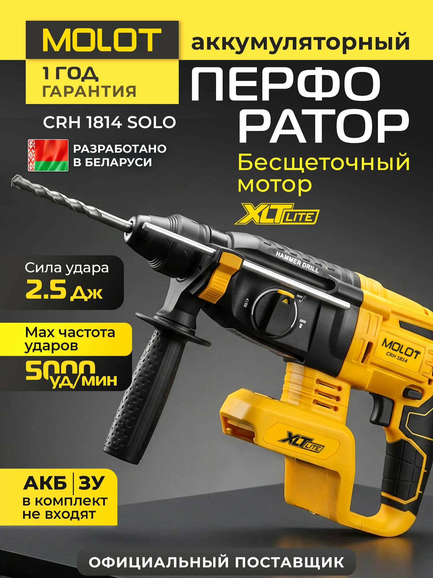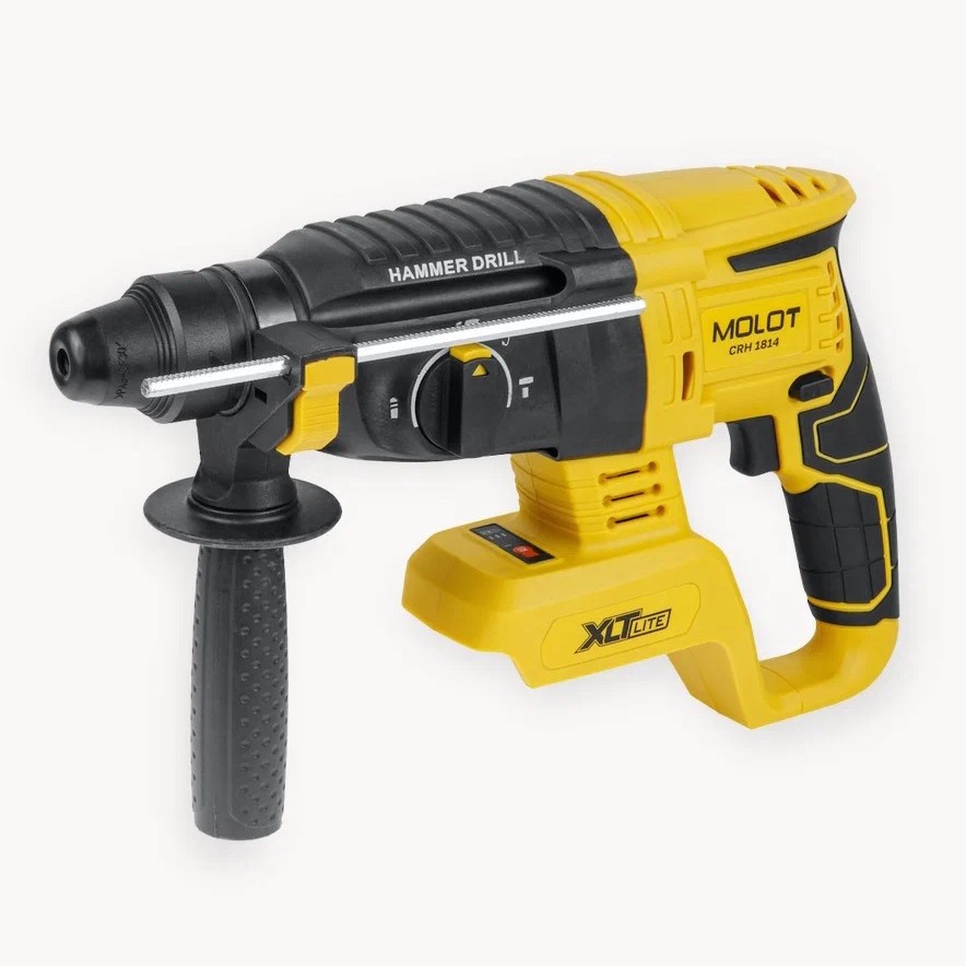 Инструмент недорогой, надёжный, бесщёточный, с патроном SDS-Plus. Сила удара 2.5 Дж достаточно для сверления отверстий в бетоне, кирпиче, для штробления. Есть регулировка оборотов, реверс, работает от аккумулятора напряжением 18 В.