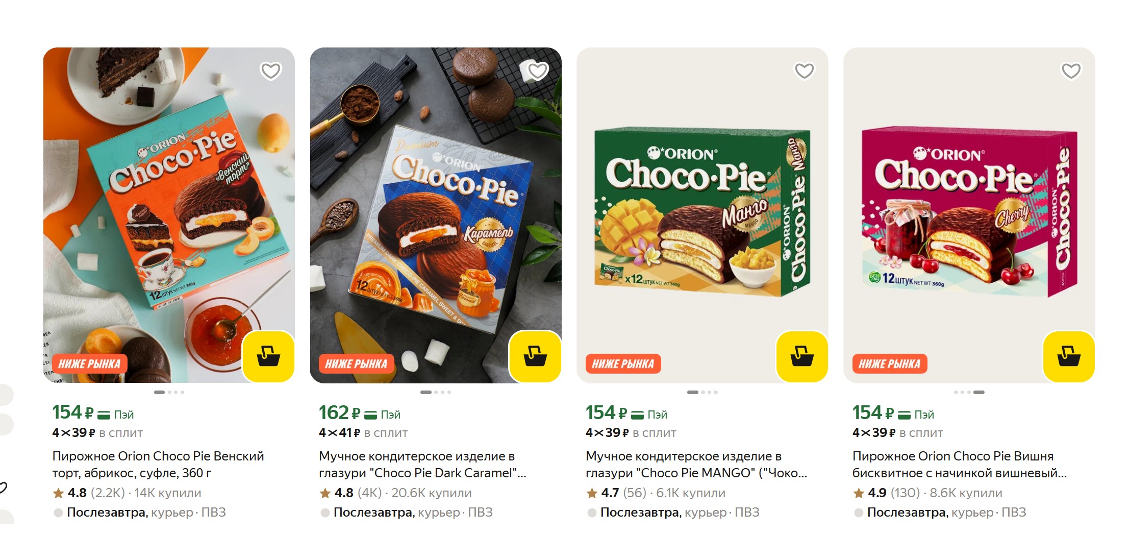 Популярные и любимые пирожные Orion Choco Pie по отличным ценам с любимой категорией недели. Представляют собой сочетание нежного бисквита, зефира, начинки и шоколадной глазури.