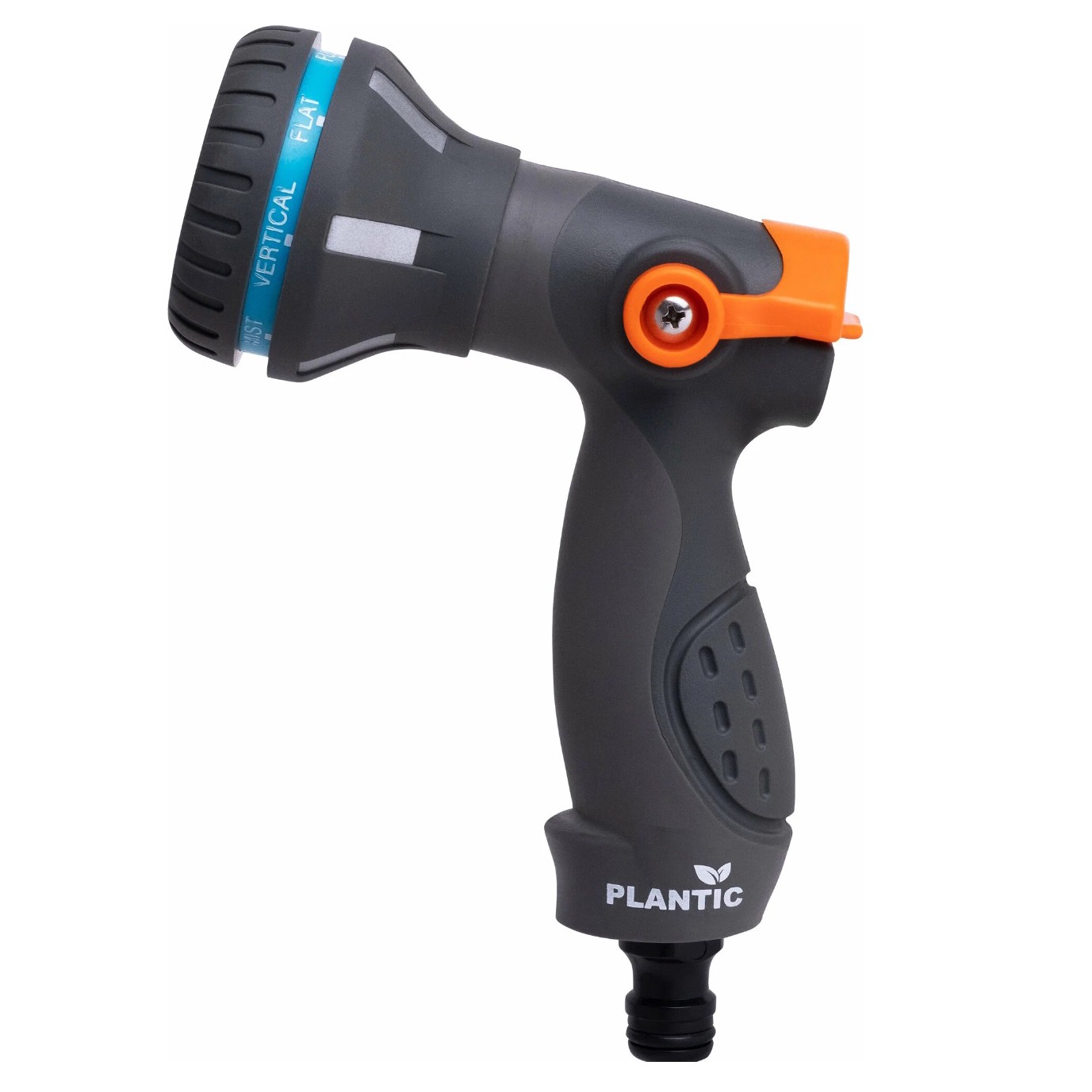Восемь режимов распыления: от сильной струи до тумана. Можно поливать рассаду нежно или сбивать паутину с кустов. Эргономичный рычаг, есть фиксатор для длительного полива. Совместим с другими насадками и дождевателями.