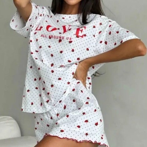 Материал 100% хлопок. Тело дышит, не жарко летом и комфортно в прохладные вечера. Натуральная ткань, приятная к коже. Дизайн с нежным цветочным узором на белом фоне. Выглядит мило и женственно, как в пинтерест.