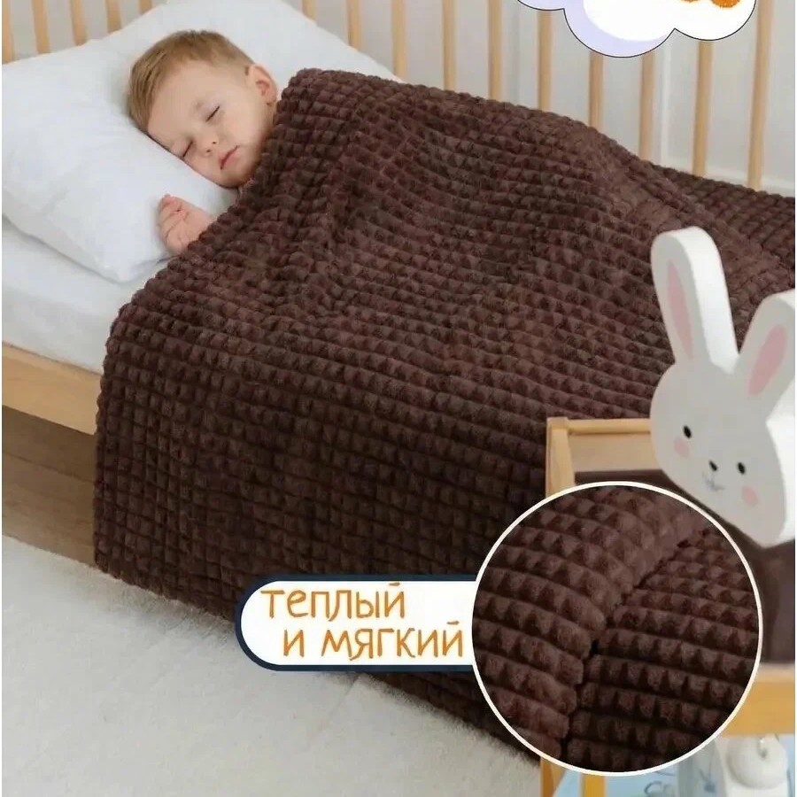 Плед качественный, двухсторонний, с геометрическим узором кубиков, размер 100х150см. Подойдёт для новорожденного в кроватку, для игр на полу или для укрывания малыша в коляске. Материал велсофт, очень мягкий, не вызывает аллергии и безопасен для детей.
