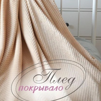 Красивый двусторонний плед с мягким ворсом с обеих сторон. Размер 180 на 200 сантиметров, имеет приятный бежевый цвет. Сделан из полиэстера плотностью 260 г на кв.м., судя по отзывам держит форму после стирок. Можно использовать как покрывало на кровать, накидку или дополнительное одеяло.