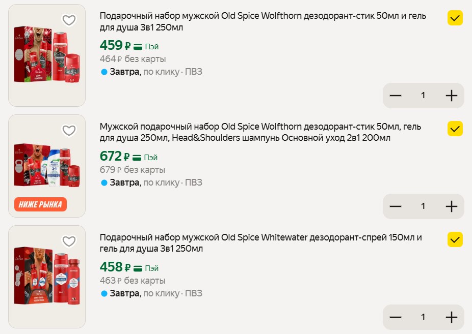 Если ещё не выбрали, что подарить на 23 февраля, возможно, это будет полезно. На Яндекс Маркете сейчас действует промокод на подарочные наборы Old Spice.