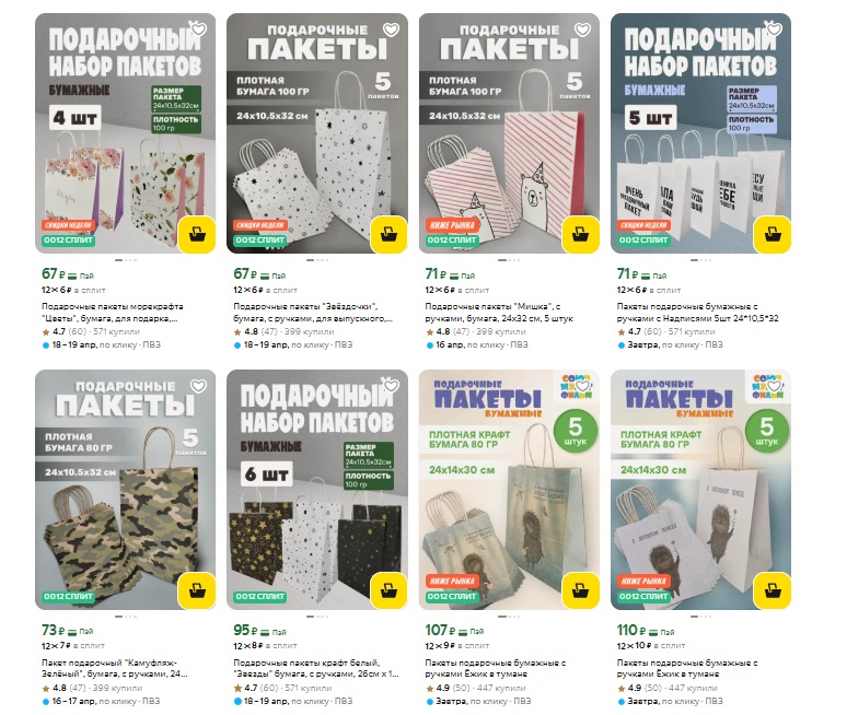 Обычно прилично дороже. Не плотные глянцевые, а такие, под крафт типо. Для легких подарочков