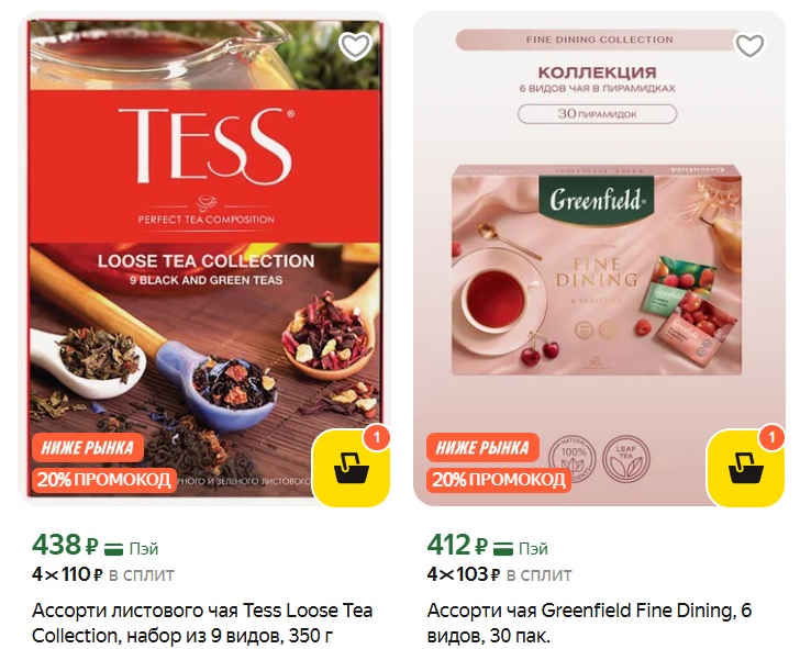 Подарочные упаковки чая с 20% скидкой по промокоду, цены получаются отличные. В каталоге есть чай в пакетиках, пирамидках и листовой чай.
