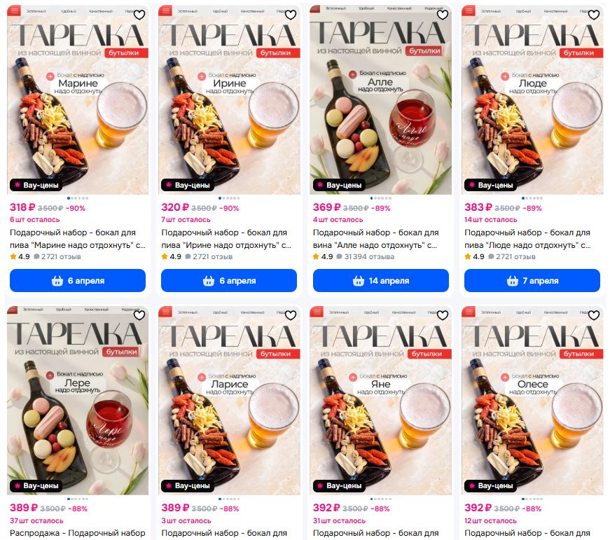 Разбирают быстро! Девочки, заказываем себе любимым😉 Тарелка-менажница из винной бутылки для закусок + именной бокал для пенного напитка. Выбор имен небольшой, поищите свое.