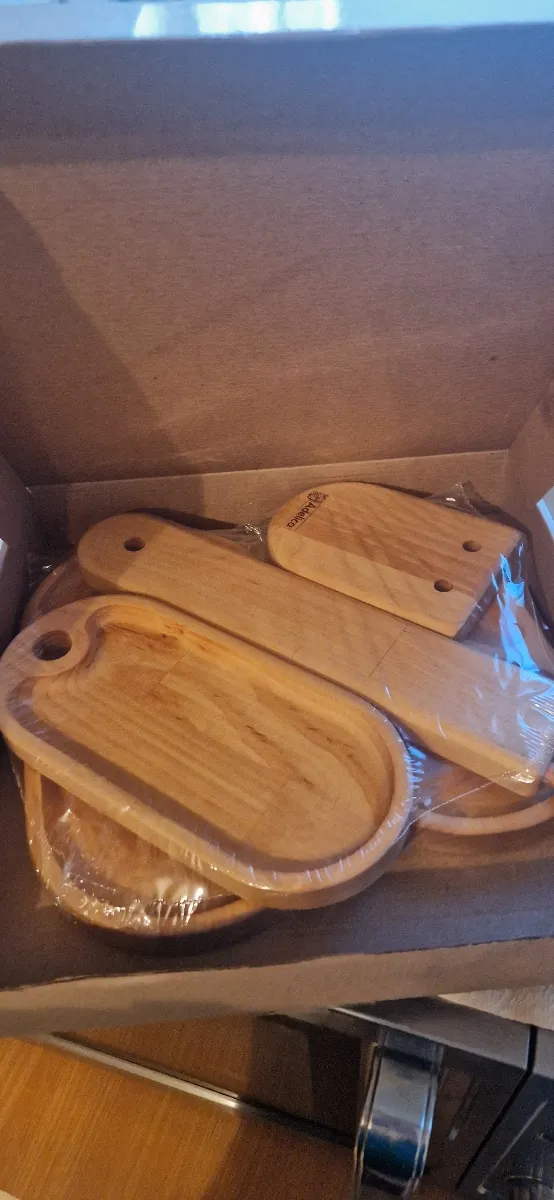 Классная цена на набор из трёх менажниц разного размера на подставке. Сделаны из дерева, выглядят уютно, подойдут для сервировки стола: разложить орехи, сухофрукты, сладости или закуски. Подставка в комплекте. Мыть в посудомоечной машине нельзя - только руками.
