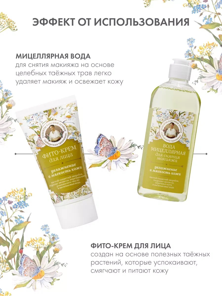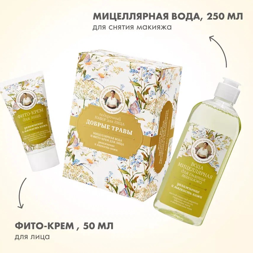 Маме присмотрела набор для лица "Добрые травы" от рецептов бабушки Агафьи. В нем мицелярка и крем с натуральными травами - зверобоем, мятой, ромашкой и васильком. Мицеллярка мягко очищает, а крем должен питать и успокаивать кожу. Маме нравится эта фирма. Думаю ей понравится и такой небольшой подарочек