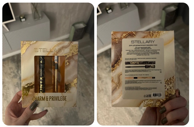 Выгодная цена с учётом кешбэка баллами Плюса на подарочный набор косметики Stellary 464 рубля + 100 баллов Плюса за отзыв. В него входит тушь Onyx black onyx 01 и карандаш для глаз black 04.